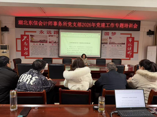 2026年3月2日,湖北东信会计师事务所党支部召开党建工作专题培训会。事务所党支部书记赵东山主持培训会,党办同志进行专题授课。